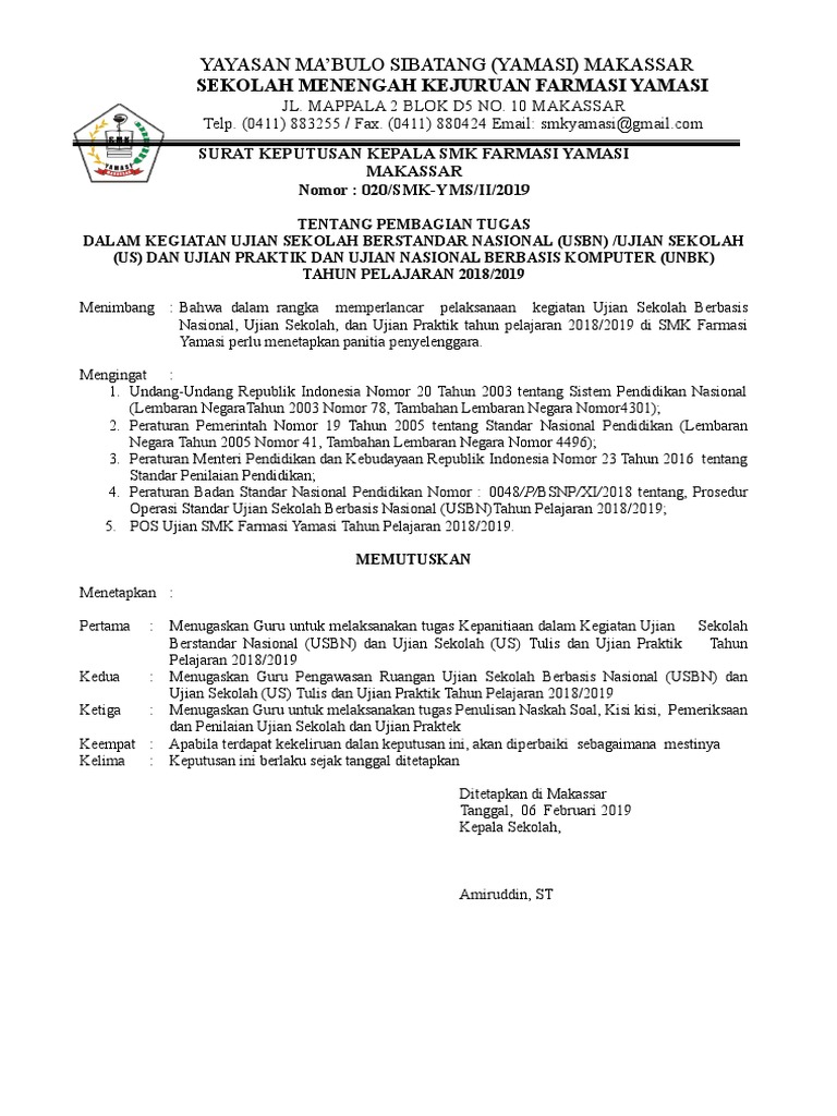 Kip sekolah sasar 17,9 juta siswa di 2021, ini besaran dana bantuan. Pembentukan panitia tersebut tertuang dalam surat keputusan / sk yang dirincikan secara lengkap beserta tugas dalam kepanitiaan tersebut. Sk pengawa ujian sekolah 2021 : Kedua asesmen baru ini dirancang khusus untuk fungsi pemetaan dan perbaikan mutu pendidikan secara nasional. Surat keputusan ketua sekolah tinggi ilmu ekonomi amm mataram (stie amm) nomor : Kamu dapat melihat skor hasil di akhir pekerjaan kamu, dan melihat analisis soal yang benar dan. Penyusun naskah soal ujian sekolax. Keputusan terkait ada dan tidaknya ujian nasional pada jenjang pendidikan dasar tahun 2021 secara resmi telah diumumkan oleh pemerintah melalui kementerian pendidikan dan kebudayaan ri. Sk pengawa ujian sekolah 2021 / ujian nasional 2020 resmi dibatalkan, ini syarat kelulusan siswa : Latihan soal ukg 2021 agribisnis produksi ternak smk terbaru online. Contoh sk panitia pat tahun 2020 websiteedukasi com : Penyelenggaraan ujian sekolah mata pelajaran pai dan budi pekerti merupakan inisiasi yang baik dalam konteks mengembangkan mutu dan kualitas pendidikan. 423.7/1205/b/2020 tentang petunjuk pelaksanaan ujian sekolah/madrasah sd/mi/sdlb kabupaten jember tahun pelajaran 2020/2021.